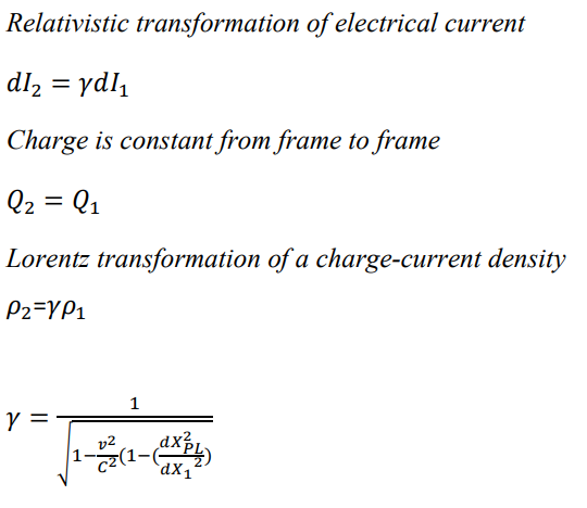 Relativistic transformation of electrical current (calculate gamma)